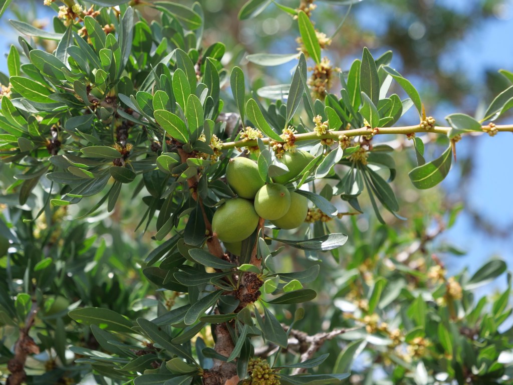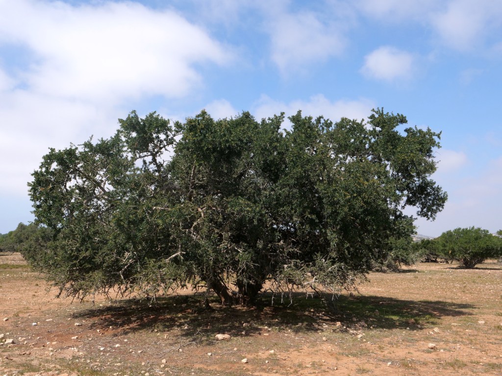 Apropos Arganbäume: Diese Kulturpflanze wächst mittlerweile nur noch auf 820.000 Hektar in Marokko (von einigen winzigen Ausnahmen abgesehen). Aus den Früchten, die im Sommer aufgelesen werden, wird in mühevoller Handarbeit das berühmte Argan-Öl hergestellt, das auch in Europa als Salatzutat oder in der Kosmetik verwendet wird. Der auch in Marokko hohe Preis für gutes Öl ergibt sich aus dem hohen Anteil manueller Arbeit und der Tatsache, das für ein Liter Öl ca. 30 kg Arganfrüchte benötigt werden. Unser Lieblingssnack: frisches Brot, bestrichen mit Amlou, einer Art Mandelbutter, belegt mit Banane und befeuchtet mit Arganöl. Lecker!
