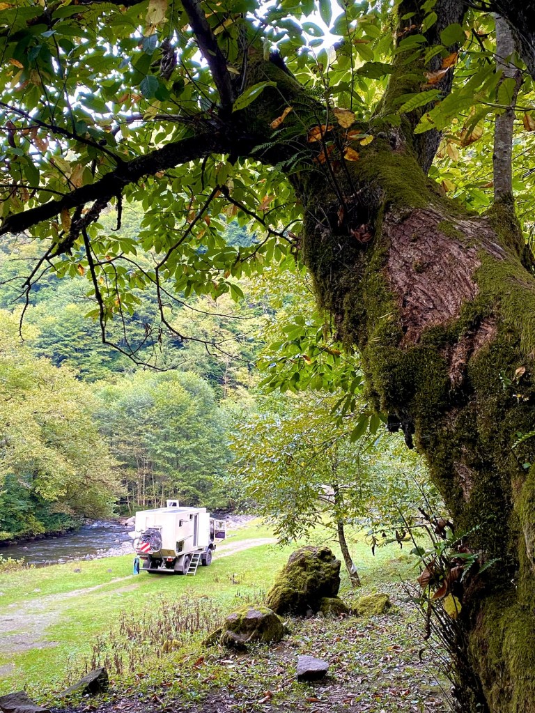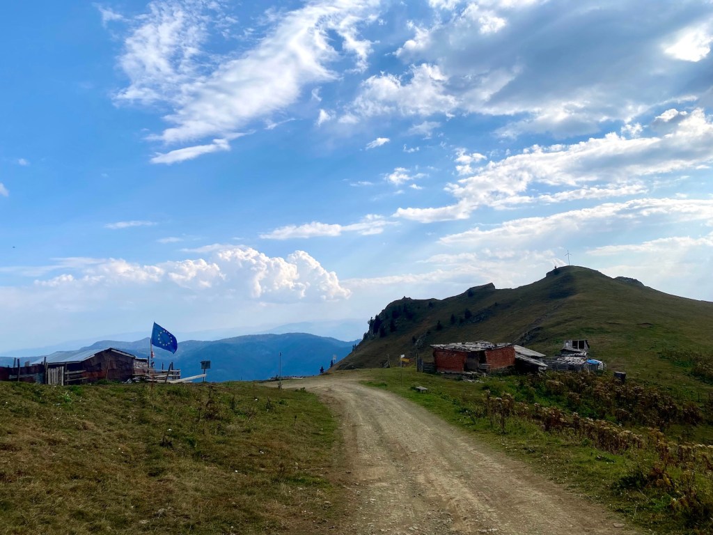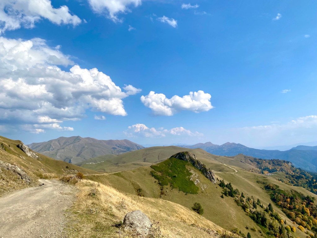 Kurz hinter dem kleinen Kurort Sairme geht es auf schmaler Piste steil bergauf in Richtung des Zekari Passes (2.182 m). Wir genießen die Aussichten und freuen uns über das grandiose Wetter. Und jedes Mal, wenn wir darüber froh sind, so ein leistungsfähiges Allrad-Fahrzeug zu haben, mit dem wir diese anstrengende Bergtour meistern können, werden wir von einem georgischen Kleinwagen überholt, dessen Insassen uns fröhlich zuwinken 😂. Allerdings gibt es auch ein paar Autofahrer, die wahrscheinlich den Angaben der Navigations-Apps und einer Straße mit dem stolzen Titel „Nationalstraße 14“ gefolgt sind, ohne zu wissen, in welchem Zustand dieser Gebirgspass ist.