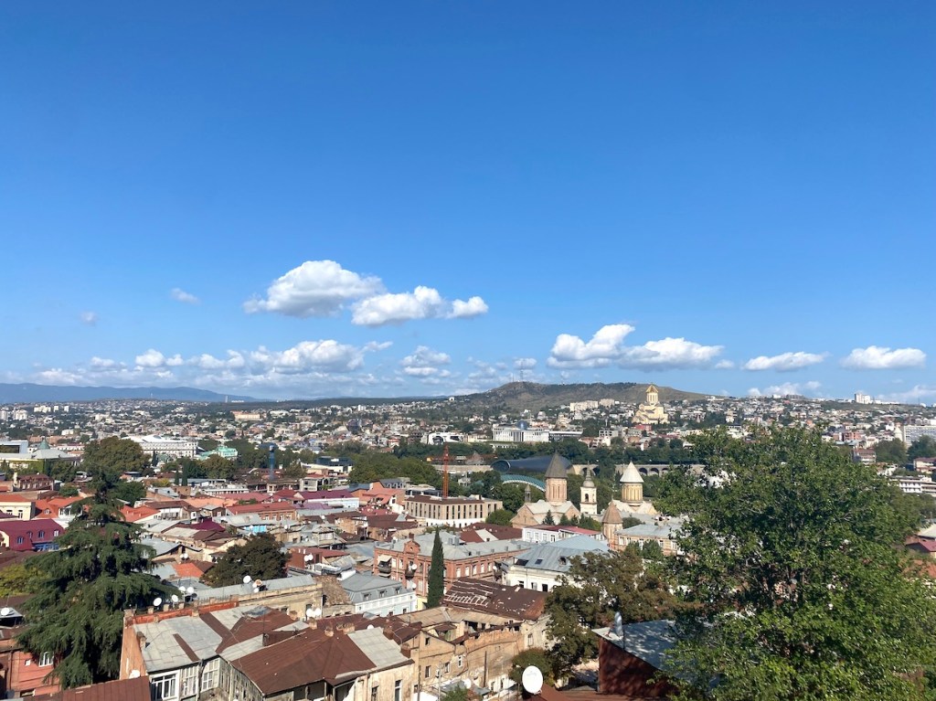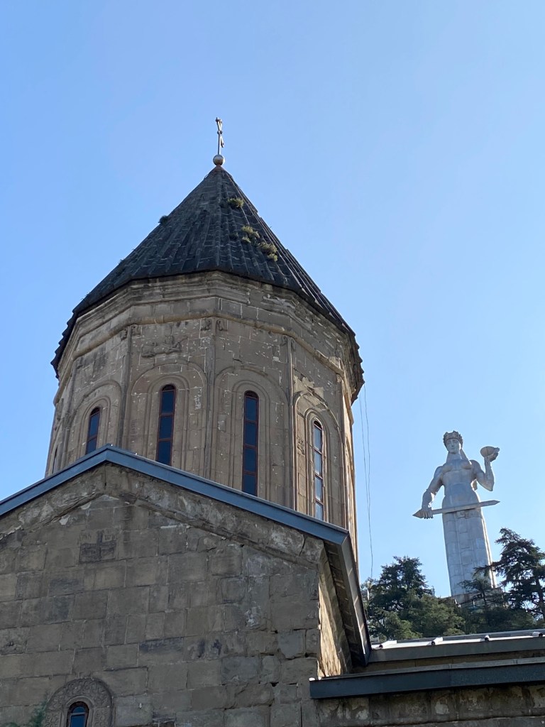 Die Betlemi-Kirche oberhalb des sehenswerten jüdischen Viertels. Dahinter die „Mutter Georgiens“.