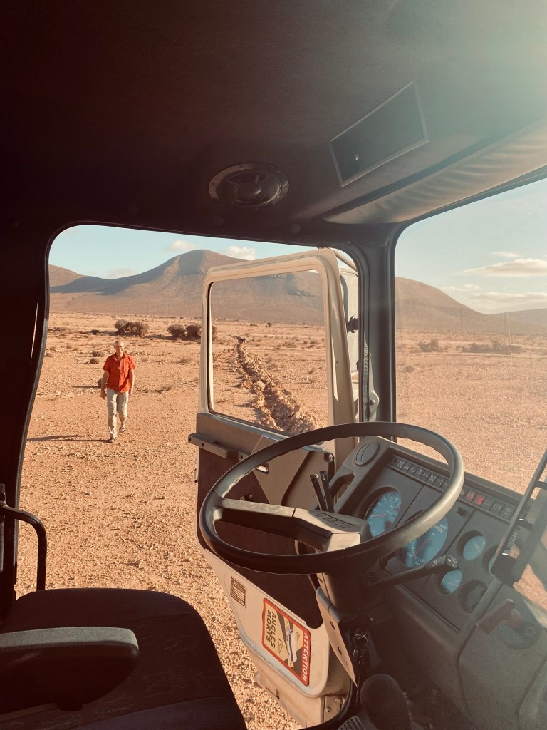 Inmitten einer ansonsten trocken anmutenden Gegend südlich des kleinen Ortes Fask sprudelt Wasser mit sehr angenehmen 38 Grad aus dem Bohrloch. Ein nur in den Sand gegrabenes flaches „Becken“ macht es uns möglich, das warme Nass zu genießen. Und da sich die Luft zum Sonnenaufgang bis kurz über den Gefrierpunkt abgekühlt hat, ist der Aufenthalt in der – zugegebenermaßen etwas schlammigen – Badewanne wahrlich herzerwärmend.