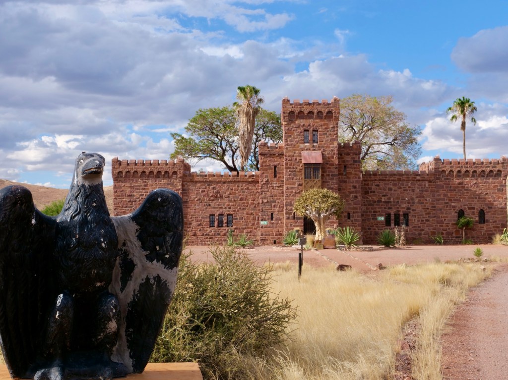 Hier mal wieder etwas aus der Abteilung „Skurriles“: Der Schutztruppen-Offizier Hansheinrich von Wolf gab das Schloss Duwisib in Auftrag, um damit seiner frisch vermählten Ehefrau zu imponieren. 1908 wurde das Schloss gebaut und nebenher eine erfolgreiche Pferdezucht etabliert. Nachdem von Wolf im ersten Weltkrieg gefallen war, wurde das Schloss verkauft. Heute ist es im Besitz des namibischen Staates.