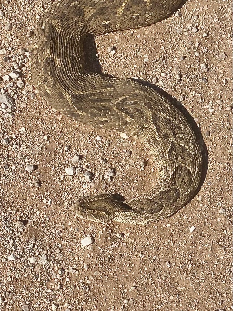 Toilette mit Aussicht. Stören kann hier die Sitzung niemand – außer das ein oder andere Tier.Die Morgensonne nutzen, um auf Betriebstemperatur zu kommen.Eins der Tiere, denen man nicht zu nahe kommen sollte. Das Gift der Puffotter ist tödlich. Hier konnten wir uns trauen, das Hinterteil war unter die Räder eines Autos gekommen.Ergiebige Regenfälle in der Trockensavanne. Das verheißt einen Wachstumsschub für die Pflanzen.