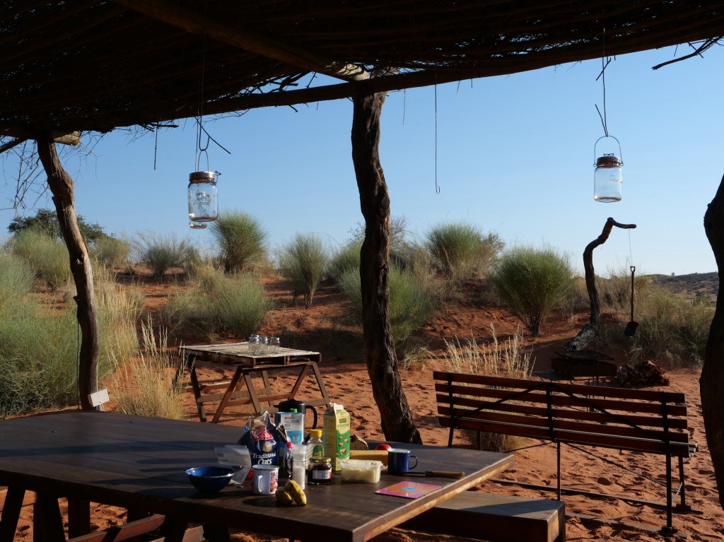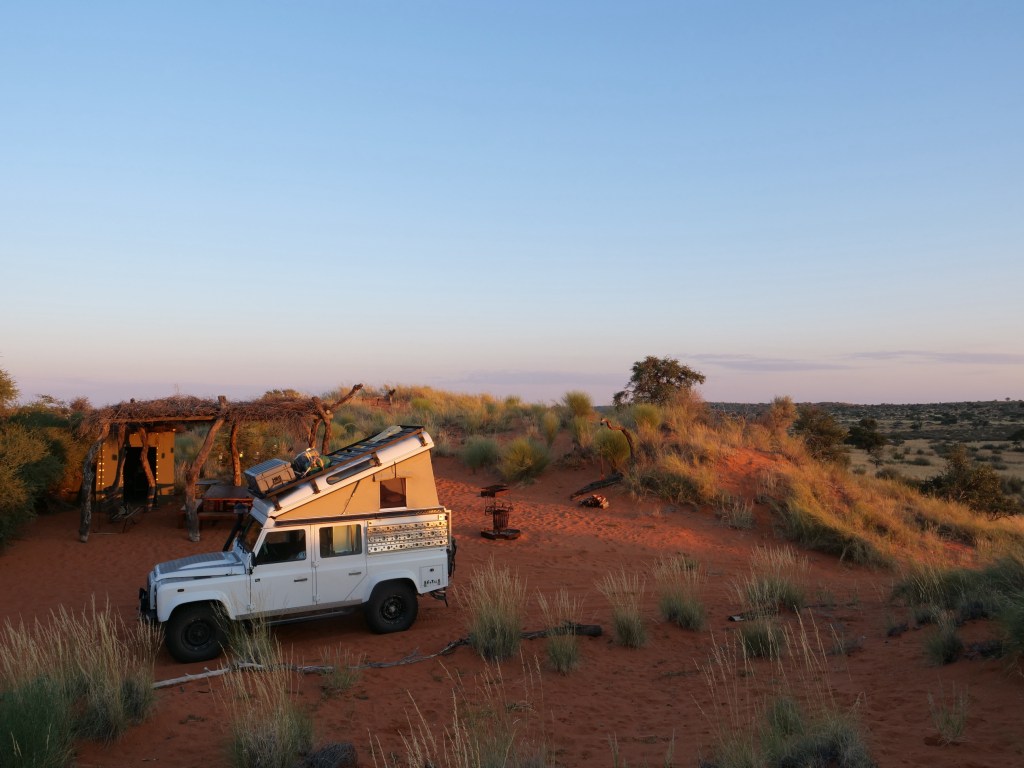Falls es Euch jemals in die Gegend von Koës verschlägt, dann verbringt unbedingt mindestens eine Nacht auf dem Platz „DuneSong Breathers“. Vom Farmhaus geht es durch Tiefsand (Reifendruck 1,5 Bar) drei Kilometer in die Dünen. Dort hat man einen Traumplatz für sich alleine! Wir waren begeistert.