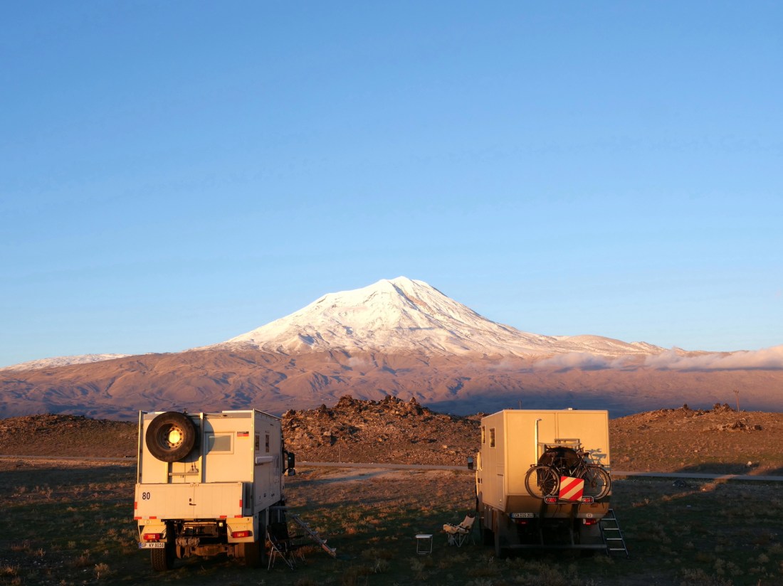 Entlang der armenischen Grenze führt uns der Weg an diversen Militärkontrollen vorbei in Richtung des heiligen Berges Ararat. Die Strecke ist faszinierend einsam, wir bewegen uns nie unter 1.000 Metern über Meereshöhe. Diese Weite begleitet unseren Trip über mehrere Hundert Kilometer. Die Straßen sind durchgehend in einem sehr guten Zustand. Während unsere Reisebegleiter Ulli und … Weiterlesen Die Heimat der Arche Noah – und ein Palast